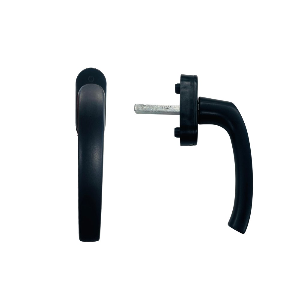 Okenná kľučka Hoppe Flensburg Secustic, N10/A, štvorcový VarioFit 7 mm s variabilnou dĺžkou 32 až 42 mm, farba matná čierna F9714M, skrutky M5x45+M5x50, aretácia po 45°.