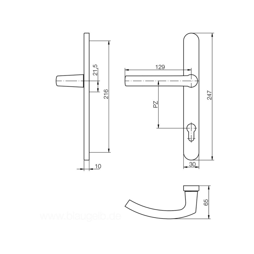 Krásne, elegantné kovanie blaugelb s úchytkami ½ DGT30 vnútorné PZ92 je dostupné v rôznych farbách povrchu z hliníka a z nehrdzavejúcej ocele mild