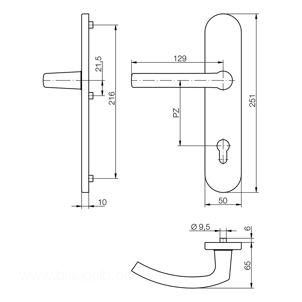 Kovanie blaugelb s rukoväťou ½ DGT50 vnútornou PZ92 možno kombinovať s rukoväťou alebo s kovaním blaugelb ½ DGT50 vonkajším PZ92. Tvarovo elegantné kovanie blaugelb s rukoväťou ½ DGT50 vnútorné PZ92 je k dispozícii v rôznych farbách povrchu z hliníka a z ušľachtilej ocele jemnej matnej.