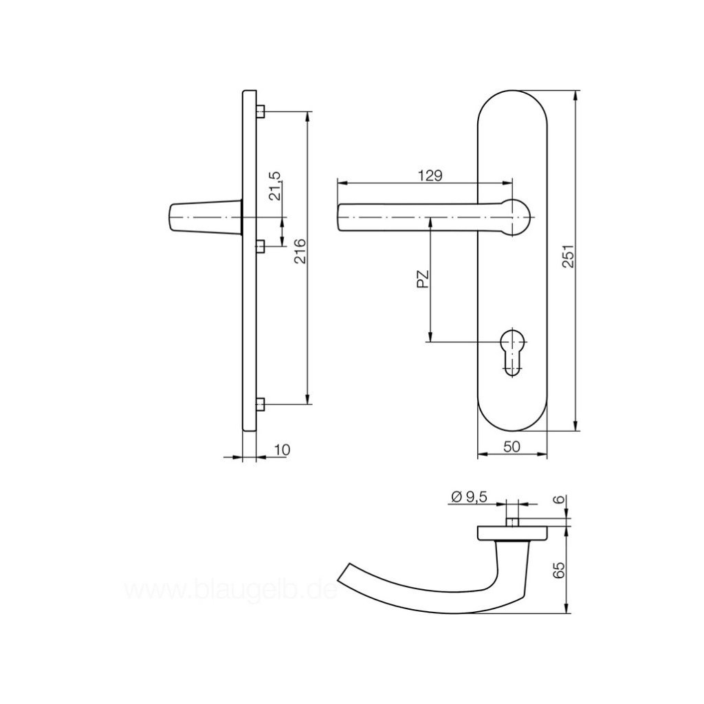 Kovanie blaugelb s rukoväťou ½ DGT50 vnútorná PZ92 možno kombinovať s rukoväťou alebo s kovaním blaugelb ½ DGT50 vonkajšia PZ92. Tvarovo elegantné kovanie blaugelb s rukoväťou ½ DGT50 vnútorné PZ92 je k dispozícii v rôznych farbách povrchu z hliníka a z ušľachtilej ocele jemnej matnej farby.