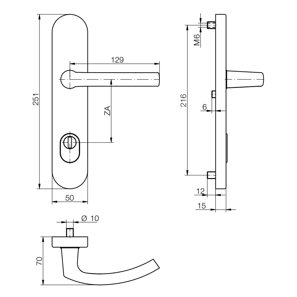 Kování blaugelb s kľukami ½ DGT50 mimoší PZ92 ZA ES1 s ší rieky ští50 mm