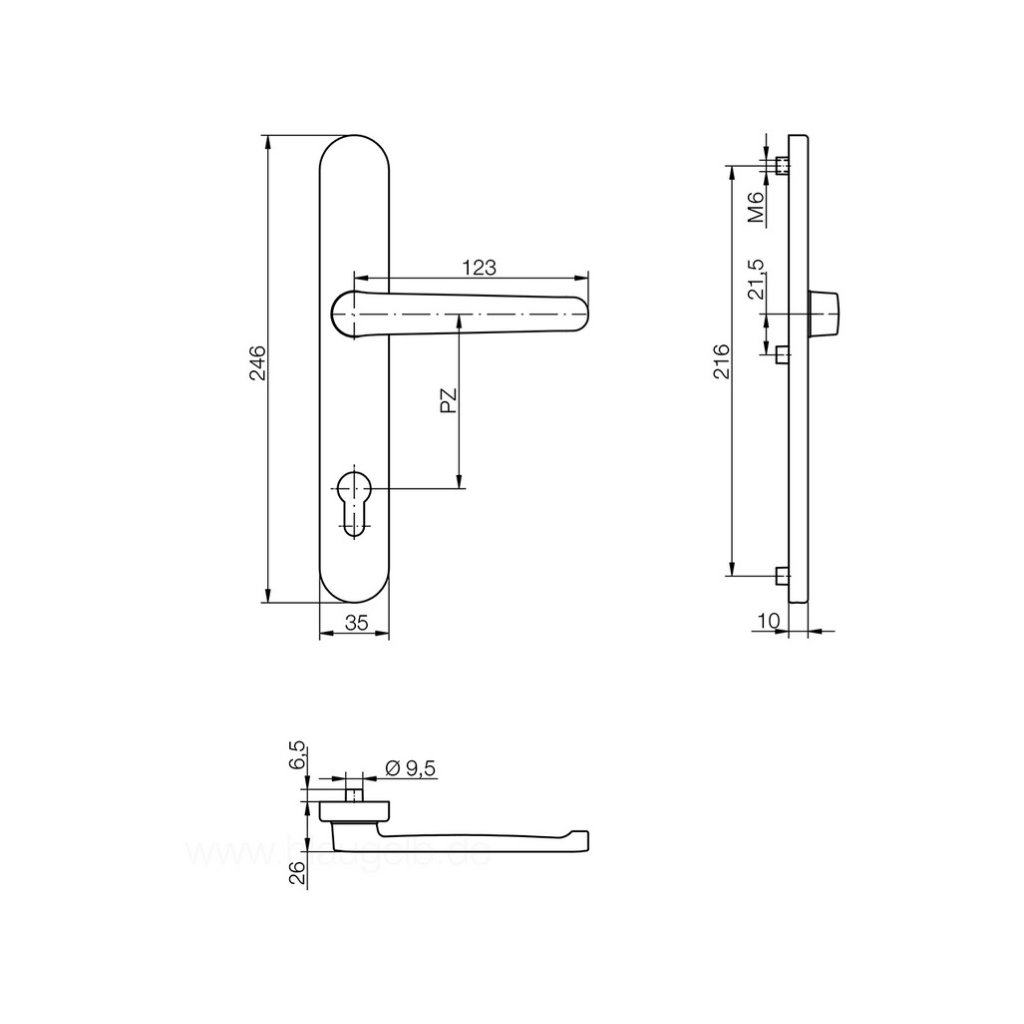 Polovičné kovanie vonkajšia kľučka BLAUGELB NGT35 znížená , PZ92, oceľ F9
