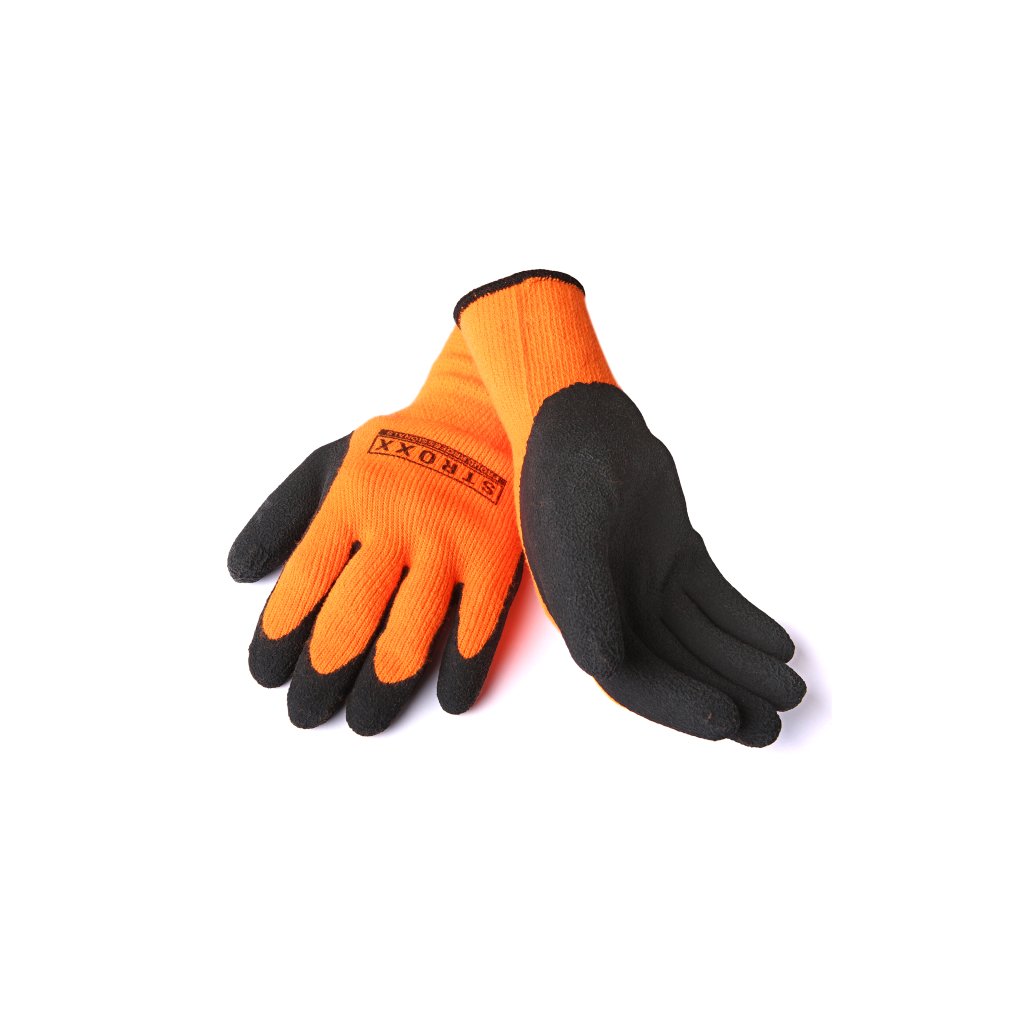 Bezšvové rukavice z akrylového úpletu s rebrovanými manžetami, z vnútornej strany čiastočne potiahnuté latexom.