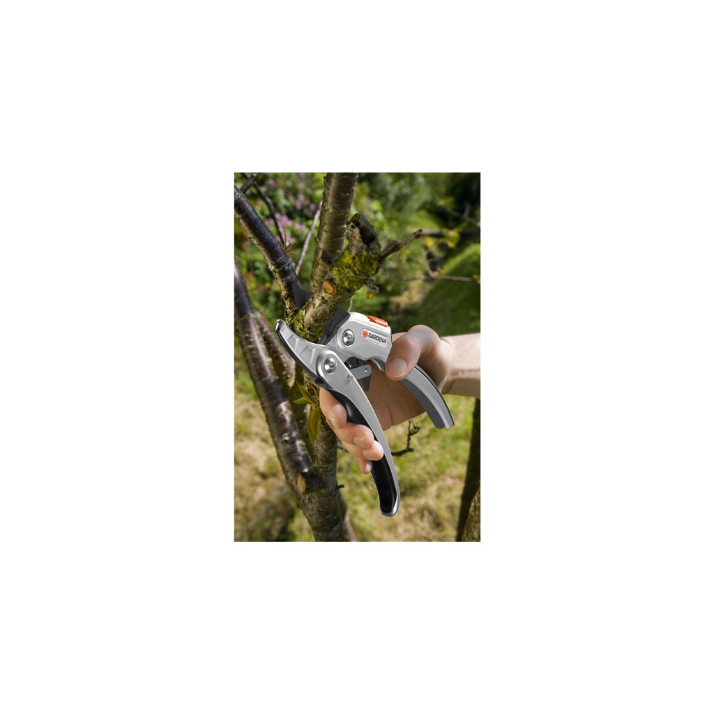 S mimoriadne pohodlnými a výkonnými račňovými nožnicami GARDENA Comfort SmartCut možno veľmi ľahko a ergonomicky strihať silnejšie konáre a vetvy. Ráčnový mechanizmus možno aktivovať v závislosti od priemeru konára (PowerPlus) - aj hrubšie konáre možno strihať rovnako ľahko a pohodlne. Umožňuje to račňový mechanizmus s tromi stupňami. Čepele sú presne brúsené. Horná čepeľ má navyše nepriľnavú povrchovú úpravu. Pohodlná hliníková rukoväť s mäkkými prvkami mimoriadne dobre padne do ruky. Vďaka bezpečnostnému zámku s ovládaním jednou rukou možno nožnice ľahko zaistiť a bezpečne uložiť. Ráčnové nožnice SmartCut Comfort strihajú konáre s priemerom do 25 mm.