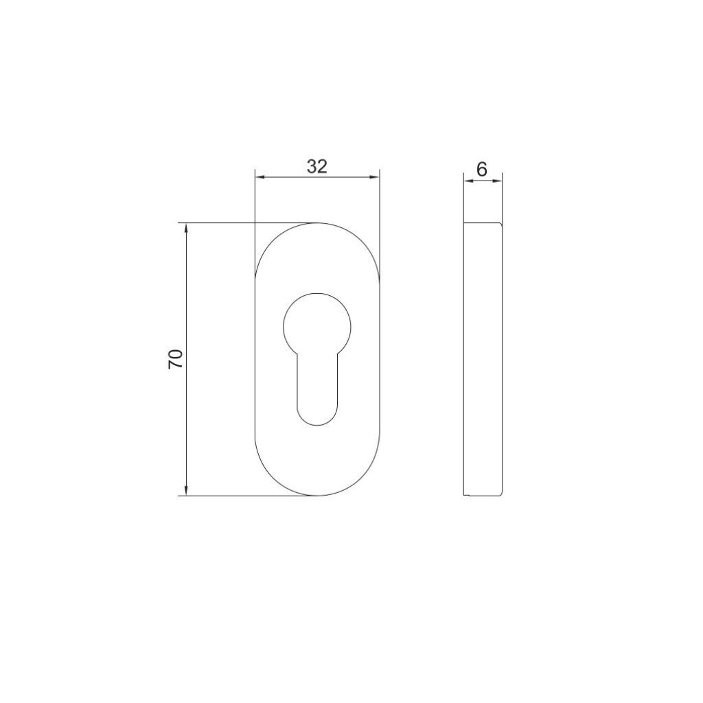 Rozeta oválna (1 pár = 4 diely) AHW660 s otvorom pre cylindrickú vložku, Nerez