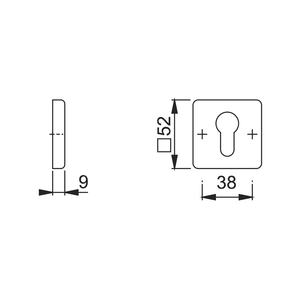 Vnútorná rozeta bez prekrytia vložky, povrchová úprava z nehrdzavejúcej ocele. Rozmery 52 x 52 mm.Dodatočné parametre