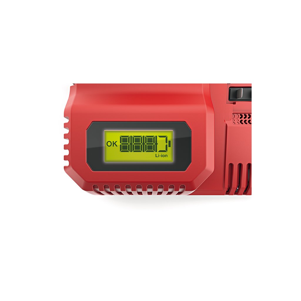 Na dobíjanie batérií 10,8 a 18,0 V. S veľkým LCD displejom na diagnostiku batérie a stavu nabíjania. Čas nabíjania 10,8 V: cca 40 min. pre 2,5 Ah / pre 4,0 Ah a cca 55 min. pre 6,0 Ah batérie. Čas nabíjania 18 V: cca 40 min. pre 2,5 Ah a cca 45 min. pre 5,0 Ah. Vďaka špeciálnemu procesu dobíjania sa 80 % kapacity dosiahne po približne 30 minútach. S integrovaným chladením batérie. Ochrana proti prehriatiu, vybitiu a preťaženiu. balenie1Dodatočné parametre