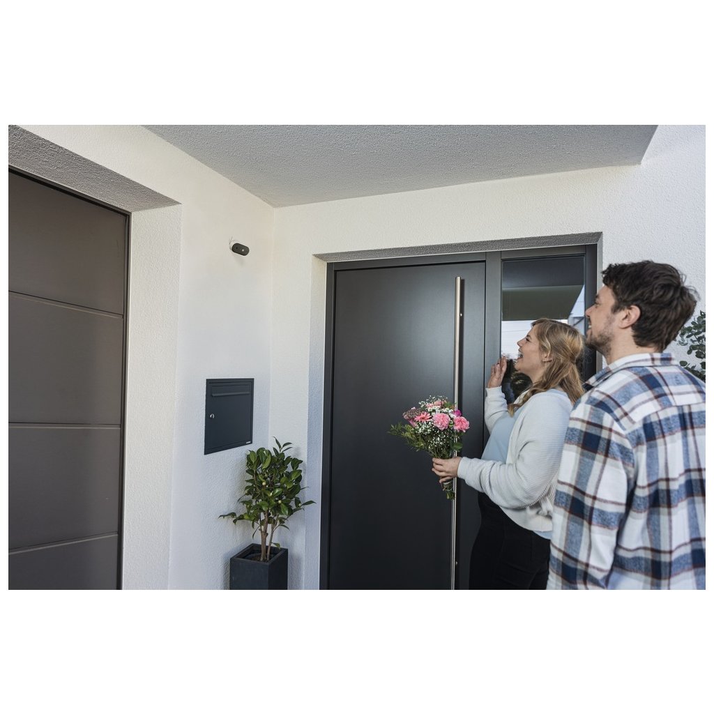 Kamera odolná voči poveternostným vplyvom ľahko odoláva dažďu, snehu a silnému slnečnému žiareniu. Integrovaná dióda LED s bielym svetlom poskytuje jasný farebný obraz aj v tme. Či už v interiéri alebo v exteriéri: Takto môžete dohliadať na svoj domov a svojich blízkych a odradiť votrelcov. Praktické: Aplikáciu a kameru možno použiť ako interkom (doručenie balíka alebo priatelia pred dverami).