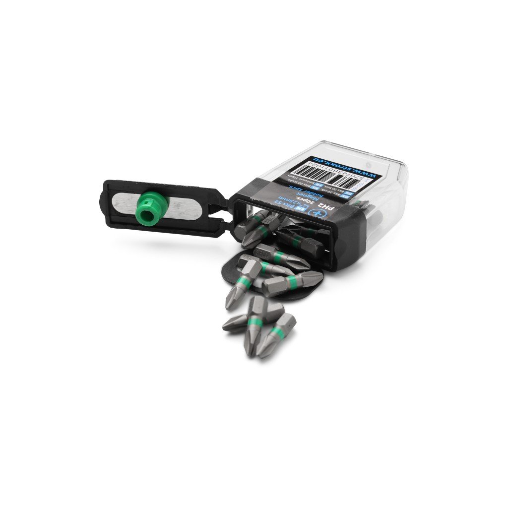 Táto sada bitov STROXX PH2 je ideálna pre profesionálnych remeselníkov a domácich majstrov, ktorí hľadajú spoľahlivé, odolné a ľahko použiteľné náradie. S touto súpravou si môžete byť istí, že budete mať vždy po ruke ten správny kus na dokončenie akéhokoľvek projektu.