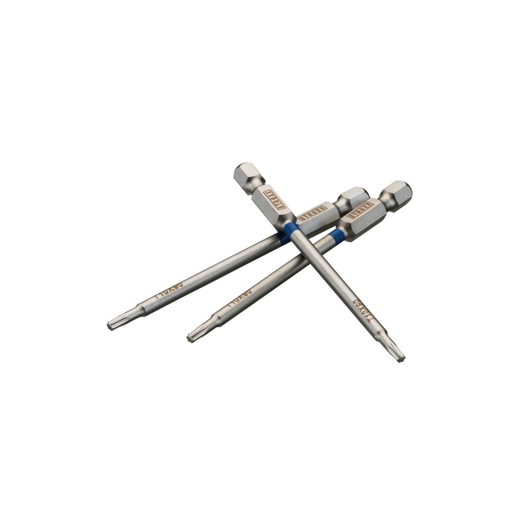 Každý bit je označený údajmi týkajúcimi sa jeho typu a dĺžky. Farebný krúžok umiestnený na bite pomáha pri rýchlej identifikácii. Bity možno používať s ručným náradím alebo elektrickými skrutkovačmi.