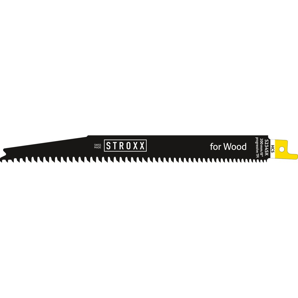 Súprava pílových listov STROXX pre šabľovú pílu HCS S2345X určená na drevo a neabrazívne drevené materiály, preglejku, drevotrieskové dosky, drevovláknité dosky a plasty do hrúbky 150 mm. Rozstup zubov 2,4 - 4 mm. Rozmery plátku 200 x 19 x 1,25 mm. Balenie po 5 ks.Dodatočné parametre