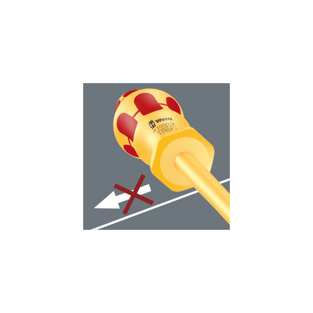 Vysokokvalitná sada skrutkovačov WERA Kraftform VDE. Viackomponentná rukoväť Kraftform na rýchlu a šetrnú prácu. Hrot Wera Black Point a komplexný proces kalenia zaručujú dlhodobú životnosť hrotu, zvýšenú ochranu proti korózii a presné zapustenie. Skúška kusu pri 10 000 V pre bezpečnú prácu pri schválenom prípustnom napätí 1 000 V. Šesťhranná ochrana proti pretáčaniu zabraňuje nepríjemnému pretáčaniu na pracovisku. S označením na rukoväti na uľahčenie hľadania a triedenia nástrojov.