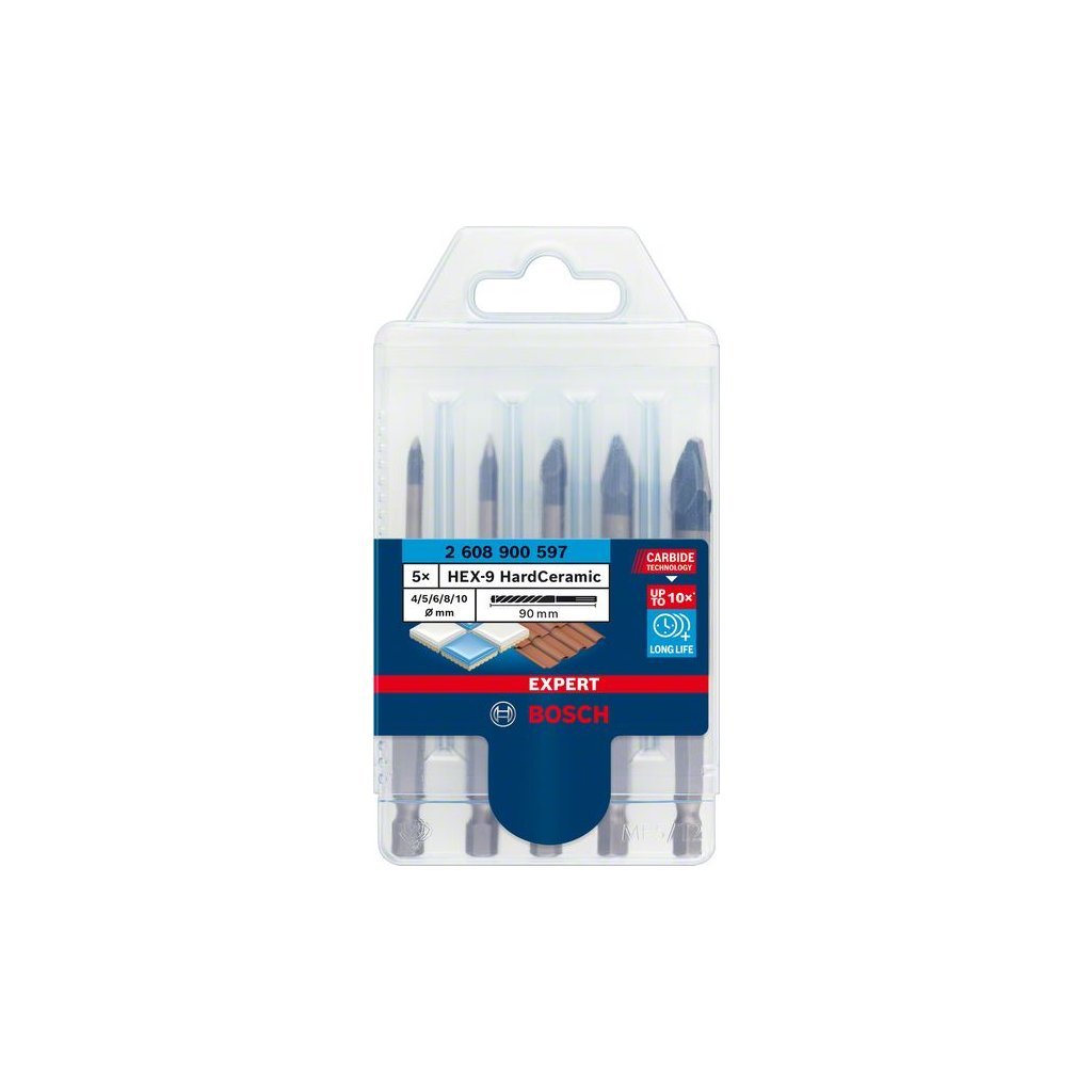 Vŕtačka Bosch EXPERT HEX-9 HardCeramic je určená na vŕtanie do dlaždíc a dokáže vŕtať otvory do tvrdých dlaždíc bez použitia maziva alebo chladiacej kvapaliny.