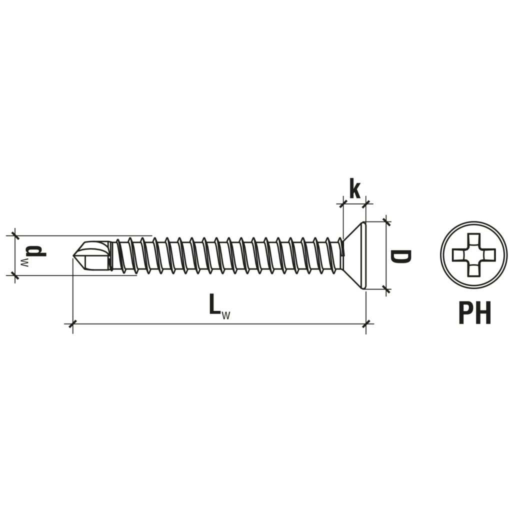 Skrutka do výstuže s vrtacím hrotom, bez rebrovania, PH2