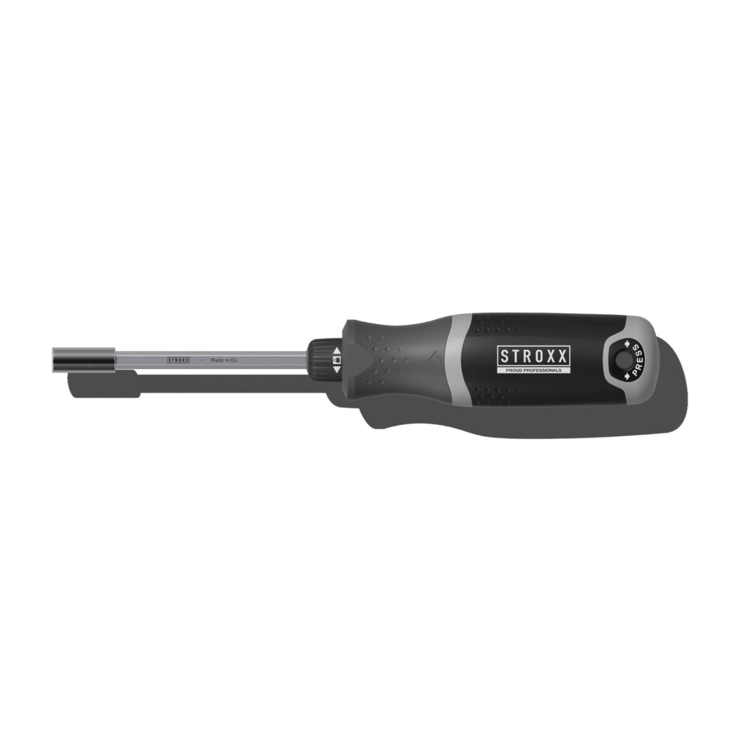 Kompaktný bitový skrutkovač STROXX s račňou a rukoväťou na rýchlu prácu a mimoriadne ergonomické skrutkovanie. Integrovaný zásobník na 12 bitov v rukoväti. Držiak bitov so silným permanentným magnetom na bezpečné uchytenie bitov.