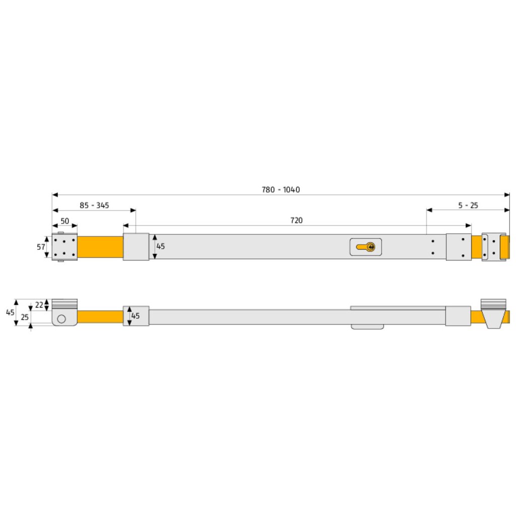 Variabilné nastavenie závory podľa šírky dverí (šírka dverí 780-1040 mm)