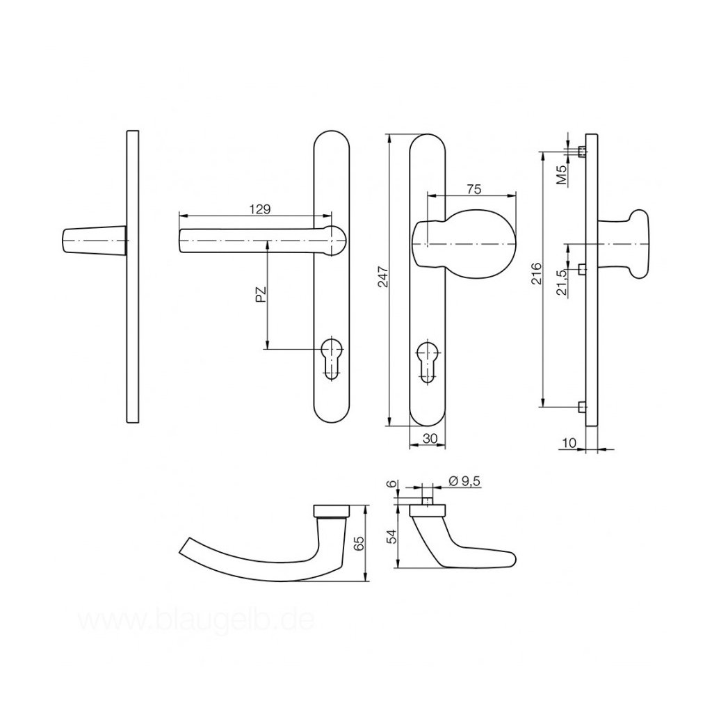 - Tvarom, elegantné guľôčkové kovanie Blaugelb KGT30 PZ92 je k dispozícii v rôznych farbách povrchu z hliníka a z ušľachtilej ocele jemne matnej