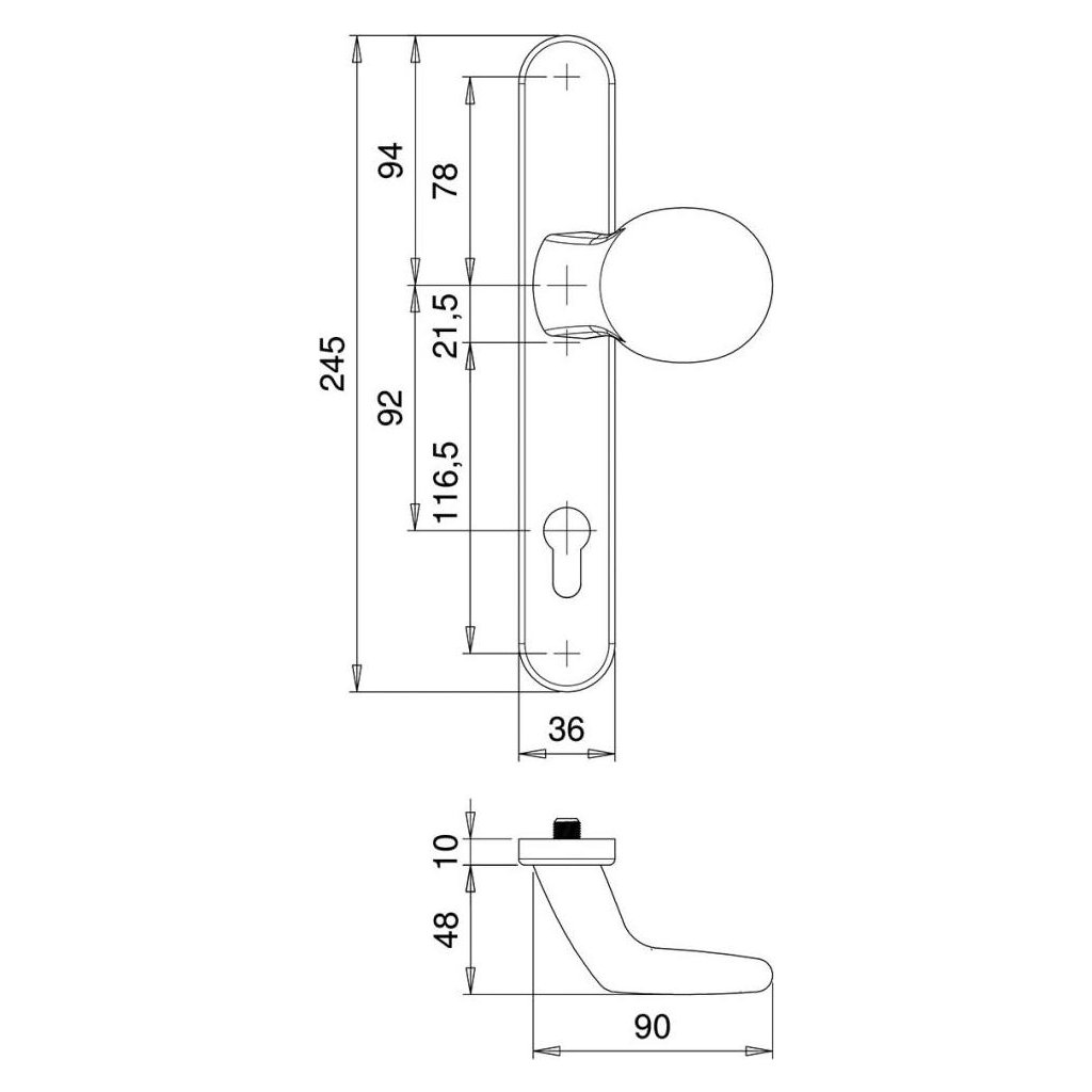 Štítové kovanie guľa/kľučka KRONOS z nehrdzavejúcej ocele / 8 mm, PZ 92/