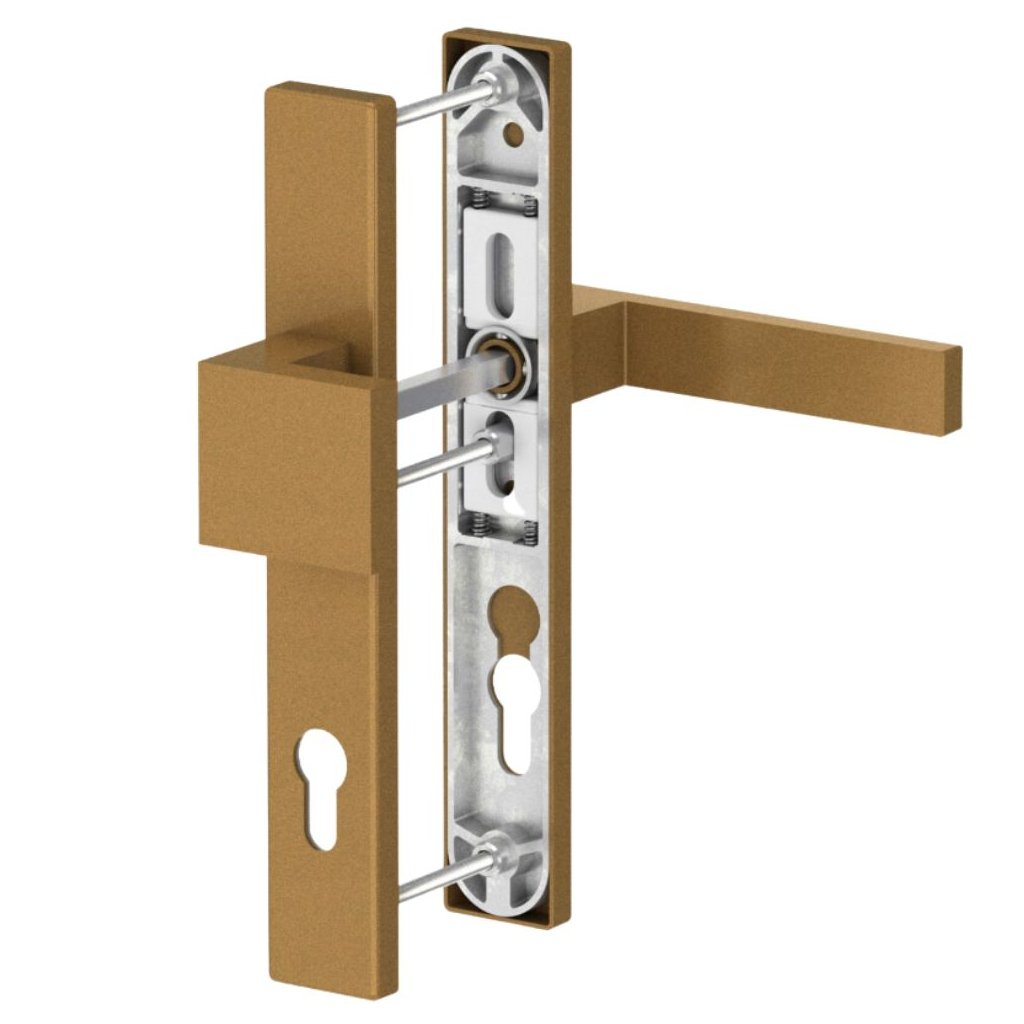 Kovanie na guľový kľúč od tradičného výrobcu kovania Medos v atraktívnom štvorcovom rade Dublin. Vyrobené z extrudovaného hliníka pre vonkajšie dvere so šírkou 71-86 mm. Šírka dosky 37 mm so skrytými skrutkami a rozstup 92 mm bez skrytej vložky. Obojstranná pružina pre presnú polohu kľučky a plynulý pohyb kľučky. Kompletná súprava vrátane štvorcovej hrany 128 mm a upevňovacieho materiálu.
