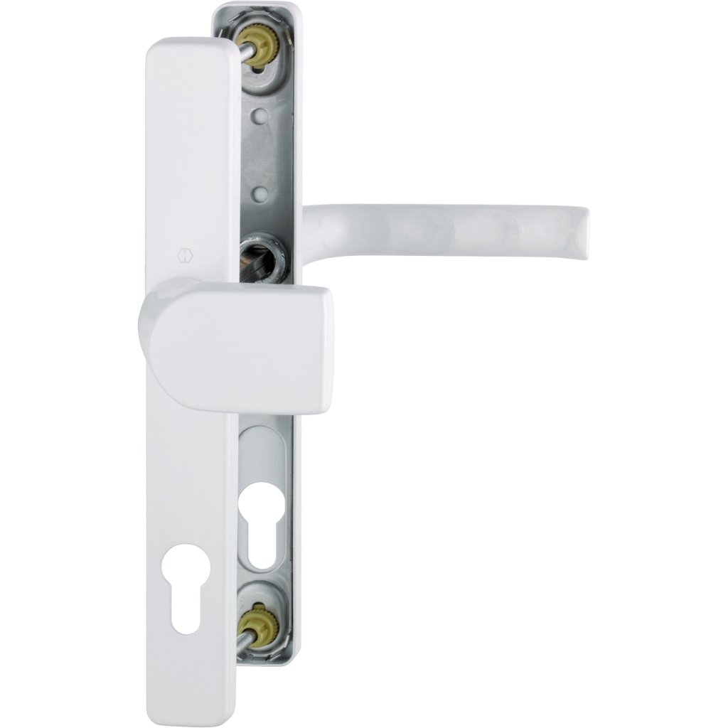 Luxusné štítové kovanie Hoppe London, úzka doska, biela F9016 /8 mm,PZ92/. Pre vchodové dvere s hrúbkou 67-72 mm. Elegantné hliníkové dverové kovanie bez krytu cylindrickej vložky. Vrátane štvorhranu a spojovacích skrutiek pre dvere hrúbky 67-72 .