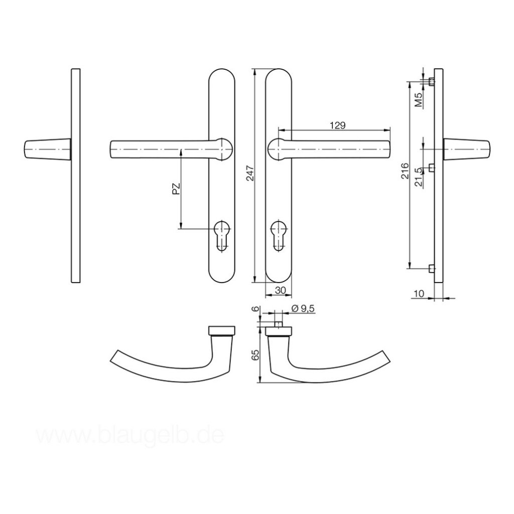 - Kovanie Blaugelb s kľučkami DGT30 PZ92 so šírkou štítu 30 mm je vhodné pre drevené, plastové a kovové vonkajšie dvere