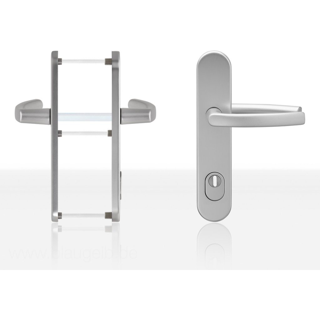 Štítové kovanie kľučka/kľučka BLAUGELB DGT50, PZ92, ZA, ES1, TS=77-82mm, F1 strieborná