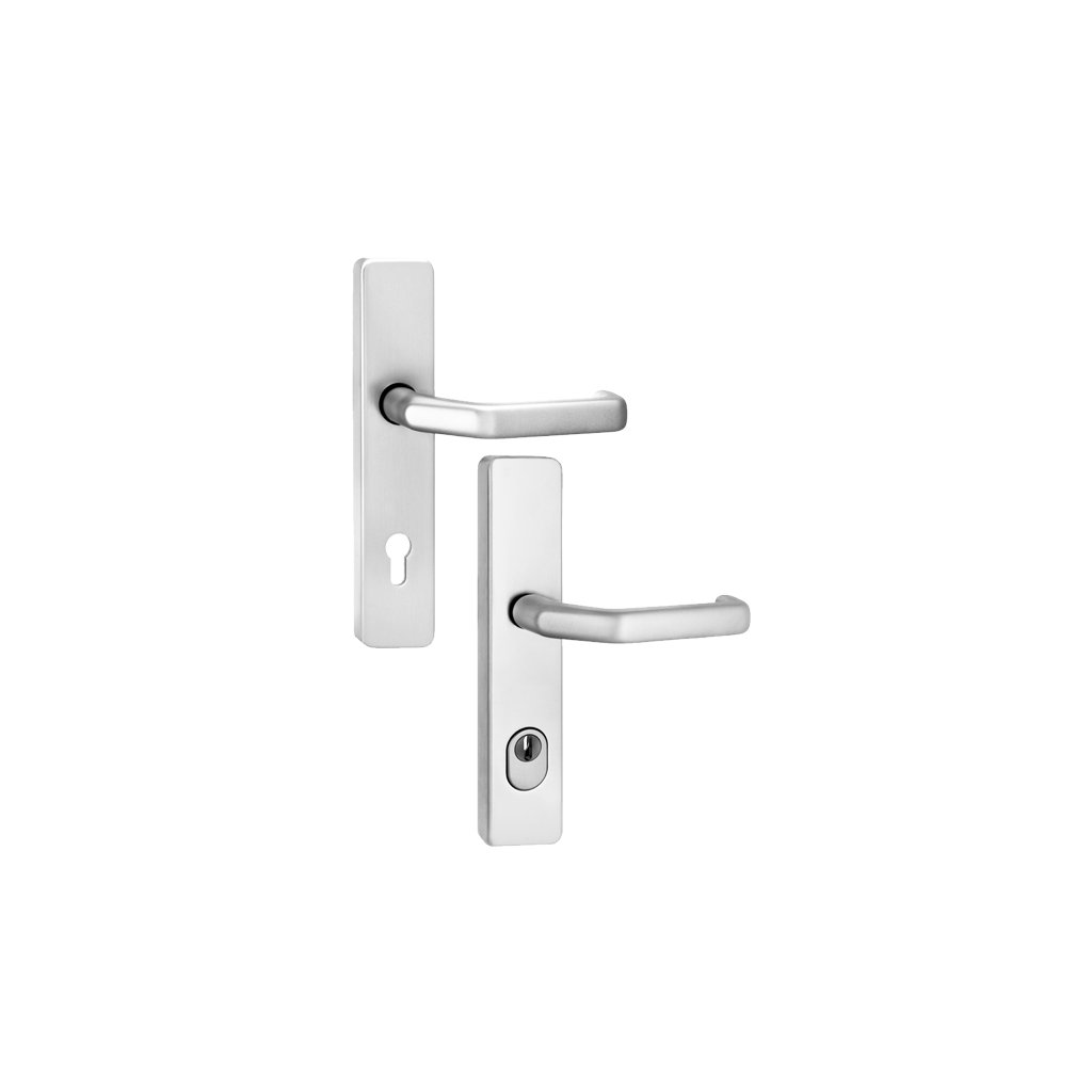 - Sada dverových kľučiek s vonkajšími platňami zo zliatiny ZnAl s oceľovými objímkami so závitom M6 a vložkou z kalenej ocele