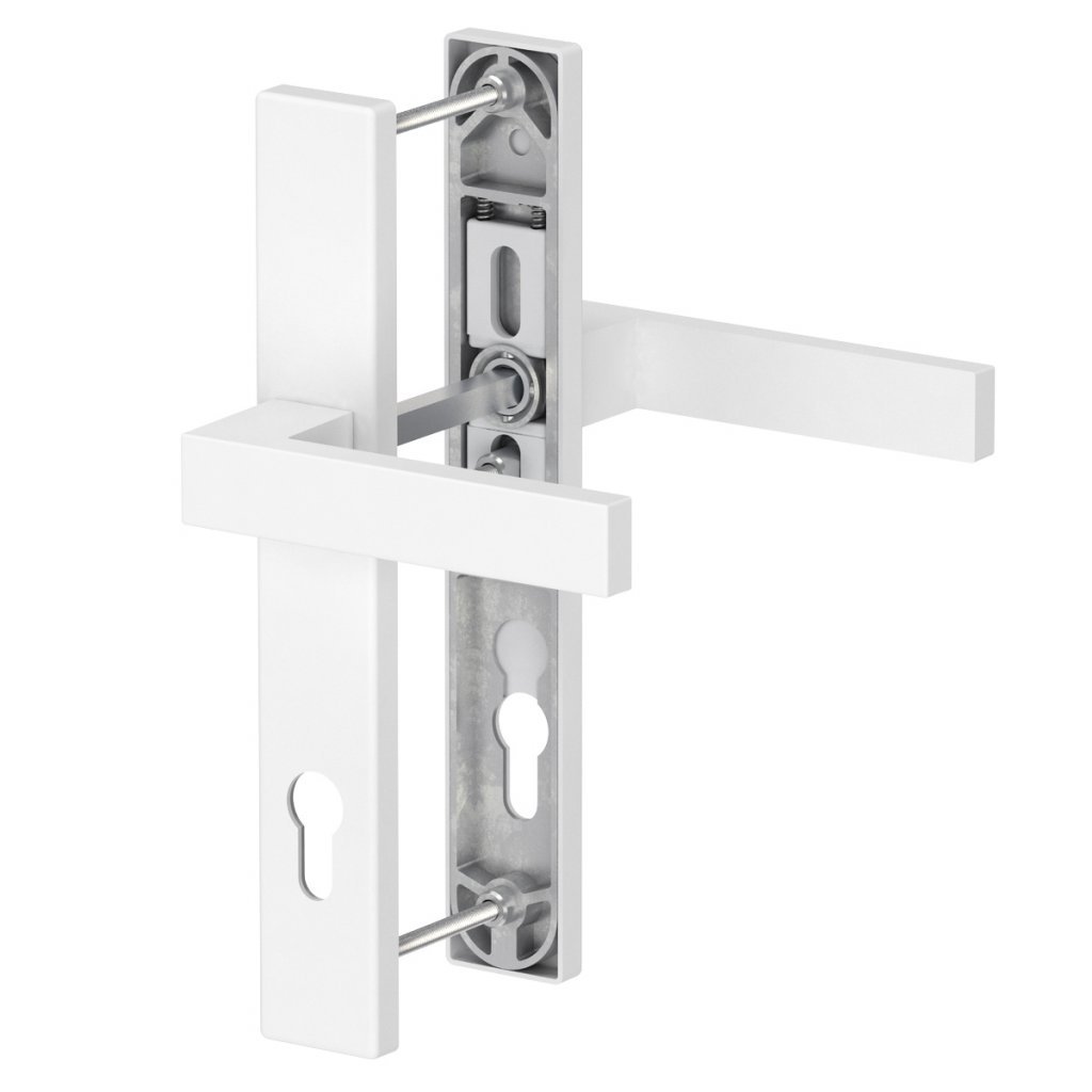 Štítové kovanie kľučka/kľučka Medos Dublin, PZ92, 37 mm doska, profil 71-86 mm, biela RAL9016M
