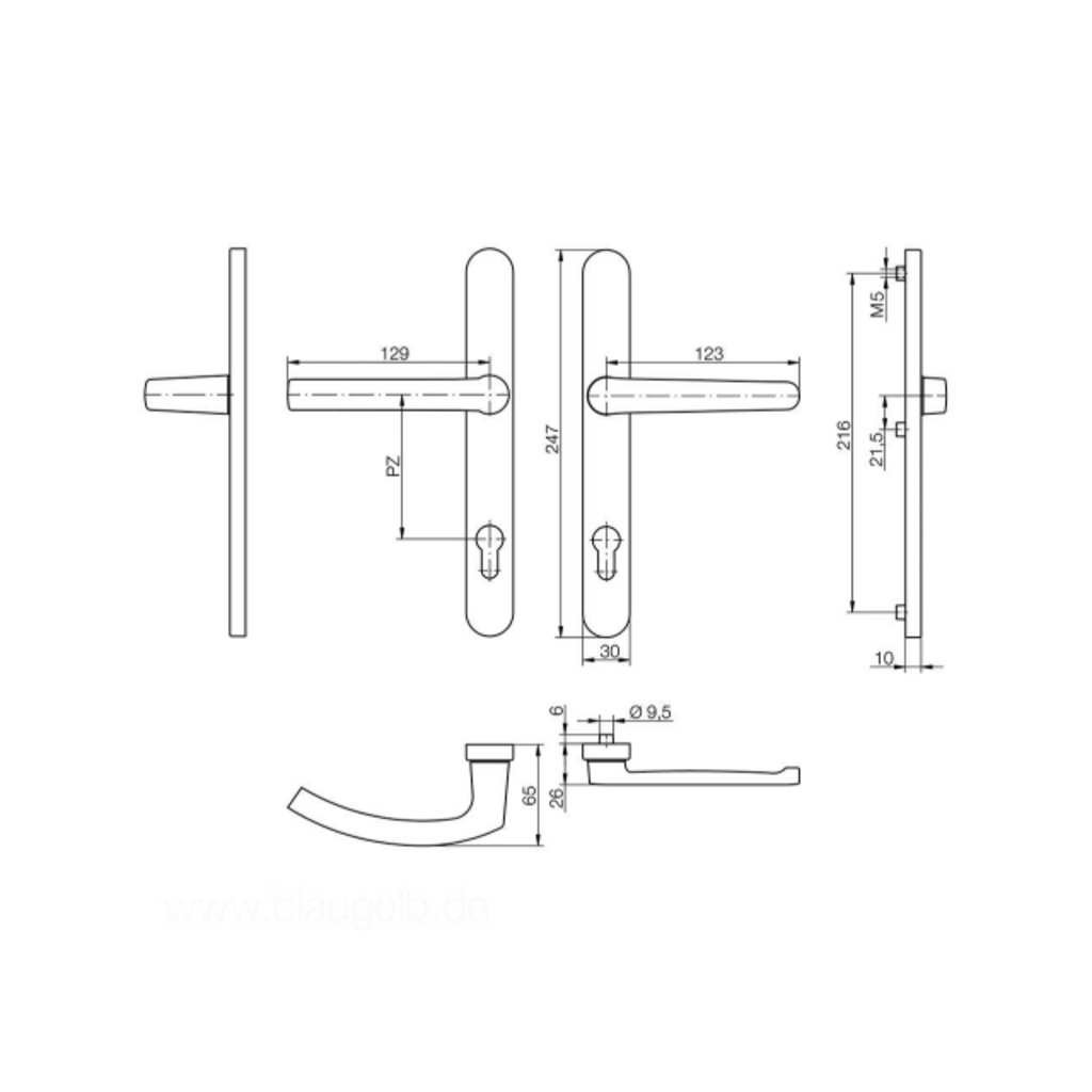 - Rolletové kovanie blaugelb NGT30 PZ92 so šírkou štítu 30 mm je vhodné pre drevené, plastové a kovové vonkajšie dvere