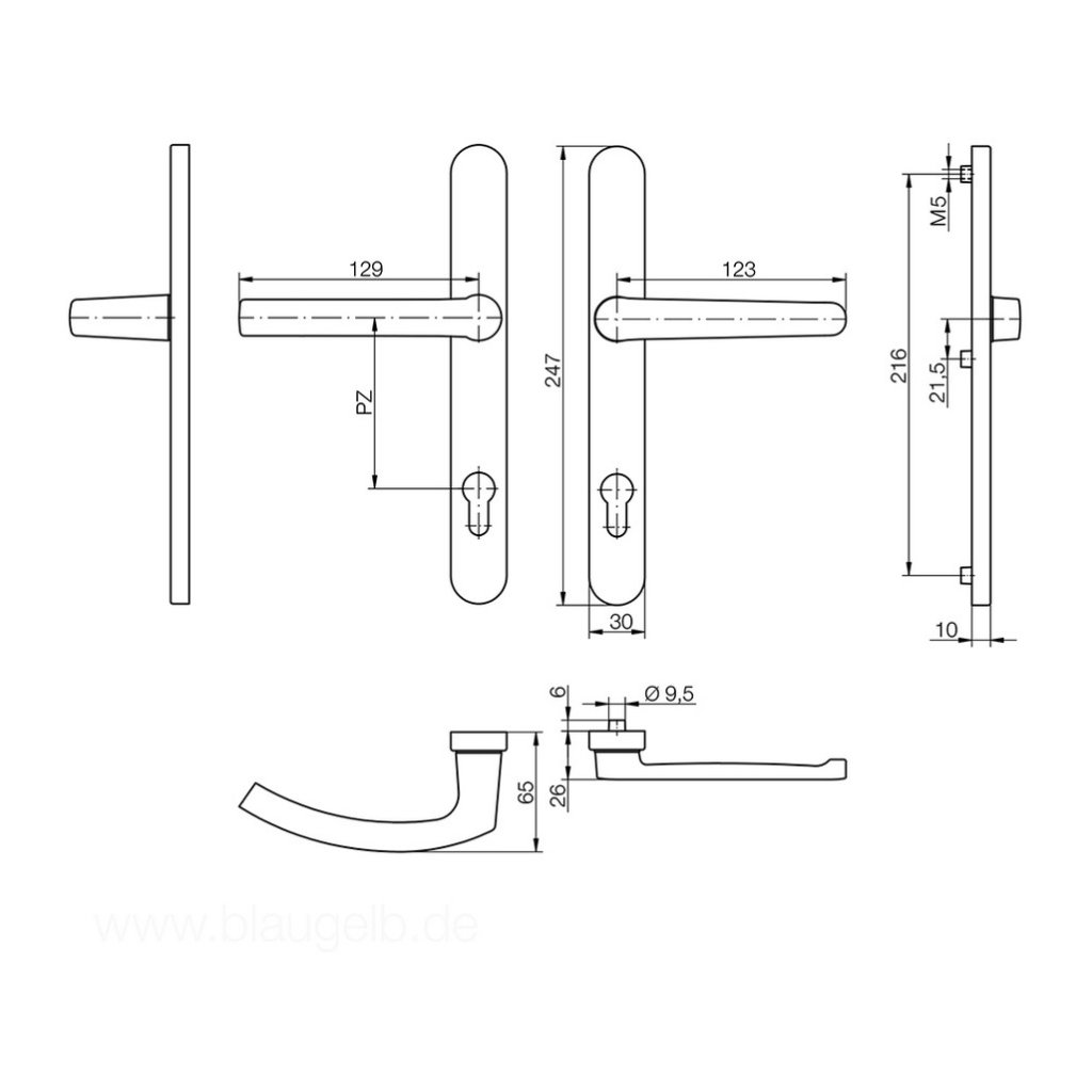 - Rolletové kovanie blaugelb NGT30 PZ92 so šírkou štítu 30 mm je vhodné pre drevené, plastové a kovové vonkajšie dvere