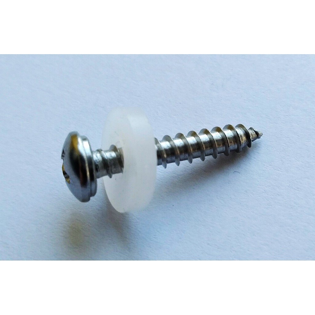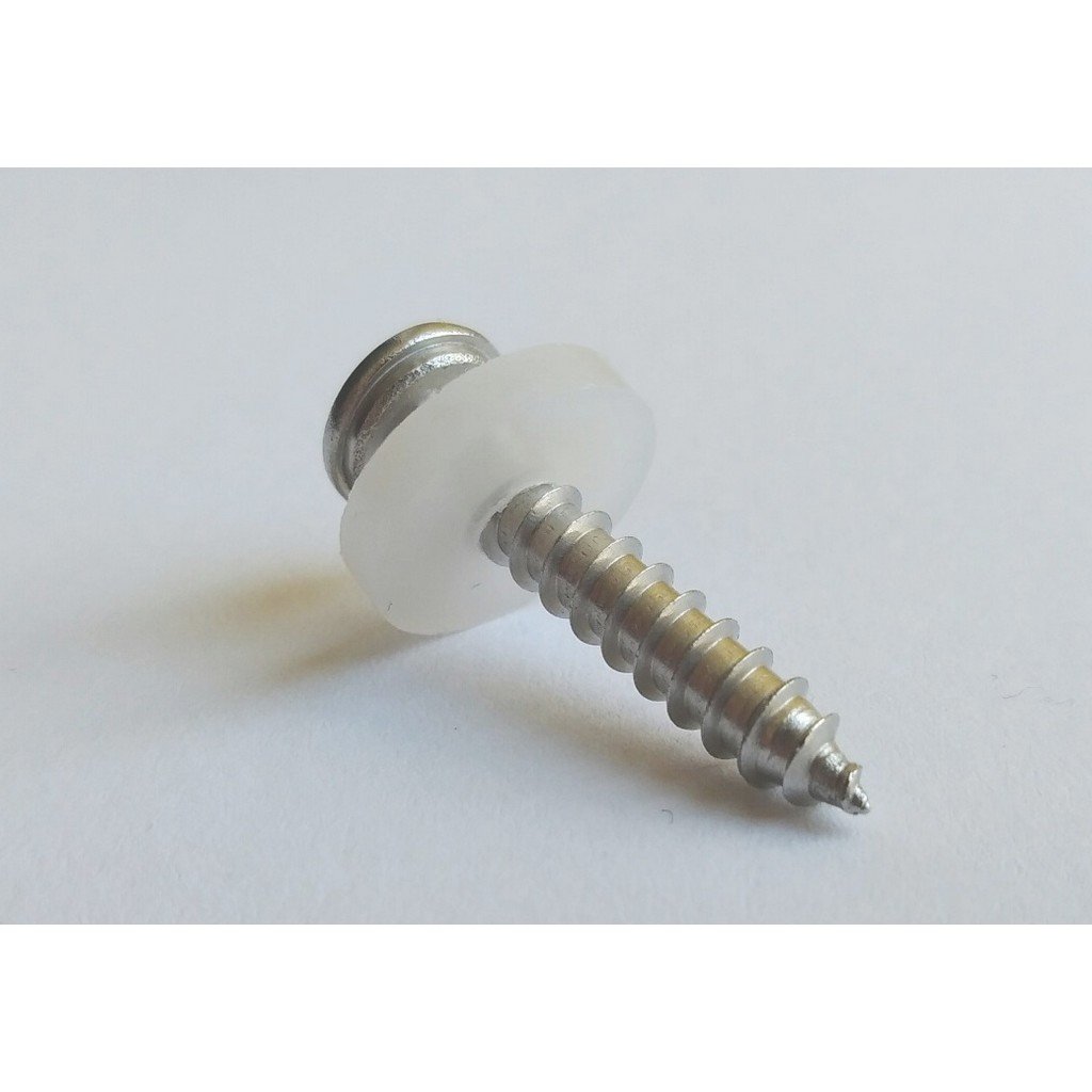 Strieborná parapetná skrutka z nehrdzavejúcej ocele 3,9 x 22 s plastovou priehľadnou podložkou