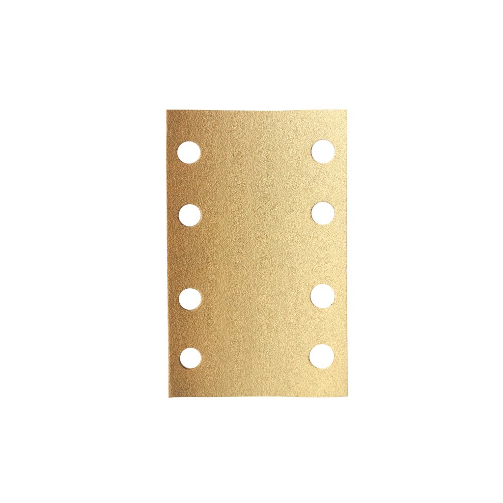 Balenie brúsneho papiera 81 x 133 mm s ôsmimi otvormi. Veľkosť balenia sa líši podľa zrnitosti 50 alebo 100 ks/balenie.