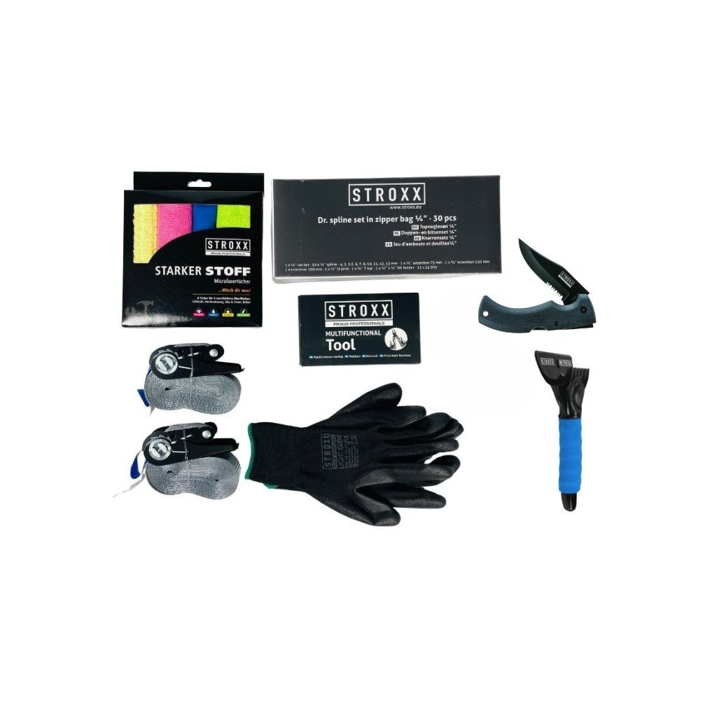 Praktická sada náradia od STROXX, ktorú oceníte najmä na cestách. Praktické závesy na zaistenie nákladu, sada utierok z mikrovlákna na okná a palubnú dosku. Pri drobných opravách alebo v núdzových situáciách oceníte praktickú sadu gola, imbusový kľúč alebo kliešte 14 v 1. Súprava pre vodiča obsahuje všetko, čo potrebujete na každodenné dochádzanie do práce a víkendové výlety na chatu alebo do prírody.
