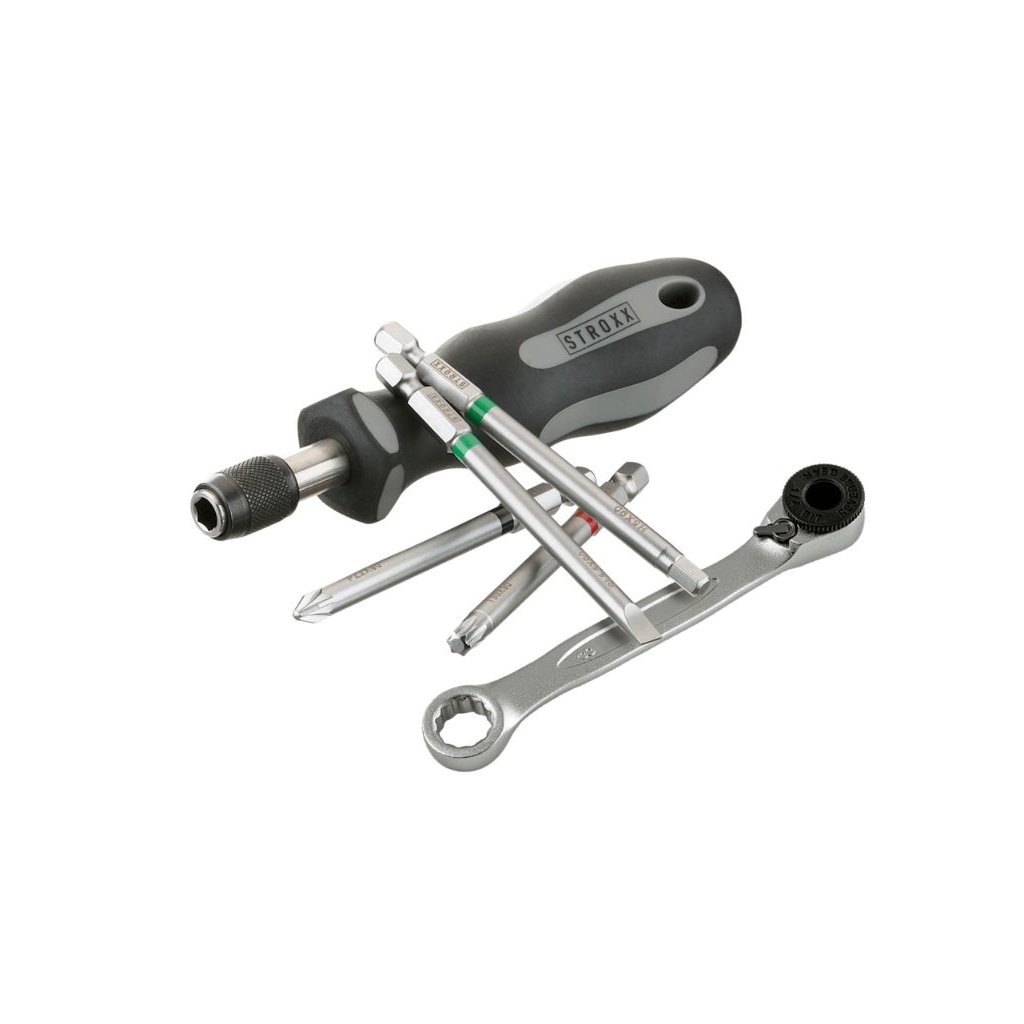 STROXX okenná servisná sada 18-dielna kombinuje profesionálnu sadu bitov na údržbu okenného a dverového kovania s mini račňou 1/4", ktorá umožňuje presnú prácu aj v úzkych a stiesnených priestoroch. Je ideálna pre remeselníkov, montážnych technikov aj domácich používateľov, ktorí vyžadujú spoľahlivé náradie s vysokou presnosťou.