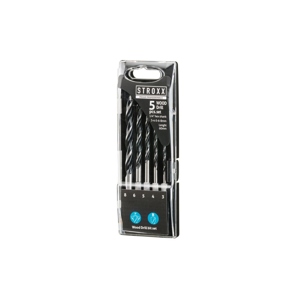 Stroxx sada vrtákov do dreva 5-dielna, Ø 3-8 mm, šesťhranná stopka