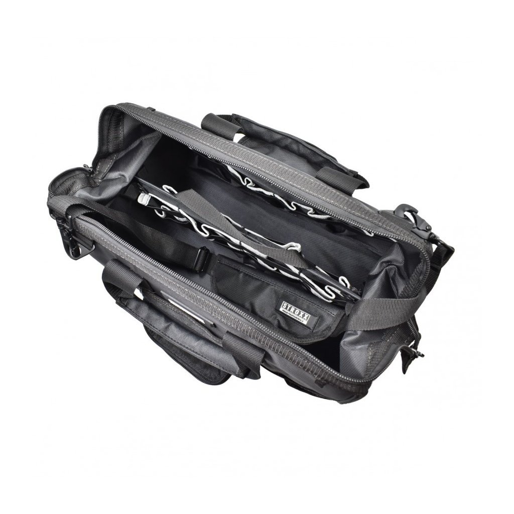 Rozmery 457 x 260 x 270 mm. Pre dokonalú organizáciu náradia. Nie je nič frustrujúcejšie ako siahnuť po náradí uprostred projektu a zistiť, že chýba. S taškou na náradie STROXX však budete mať všetko náradie na dosah ruky. Vďaka veľkému otvoru na zips sa aj veľké náradie dá ľahko vybrať. Menšie náradie je prehľadne uložené v pevných sieťovaných vreckách na vonkajšej strane tašky. Pojme všetky typy ručného náradia a malé elektrické náradie. Mimoriadne pevné zipsy a materiály sa neroztrhnú pri kontakte s ostrými hranami. Veľké otvory umožňujú vidieť celý obsah tašky, namiesto toho, aby ste v tme hmatali známe tvary. Sieťované vrecká sú ideálne na uloženie drobných predmetov, ako sú pásky a spojovací materiál. Mimoriadne pevná konštrukcia zaručuje dlhoročné používanie bez poškodenia.