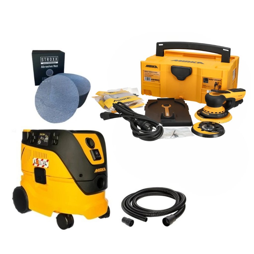 Sada Mirka DEROS II 5650 CV, Mirka 1230L PC a brúsivo Abranet je ideálnou kombináciou na profesionálne a účinné brúsenie s minimálnou prašnosťou.