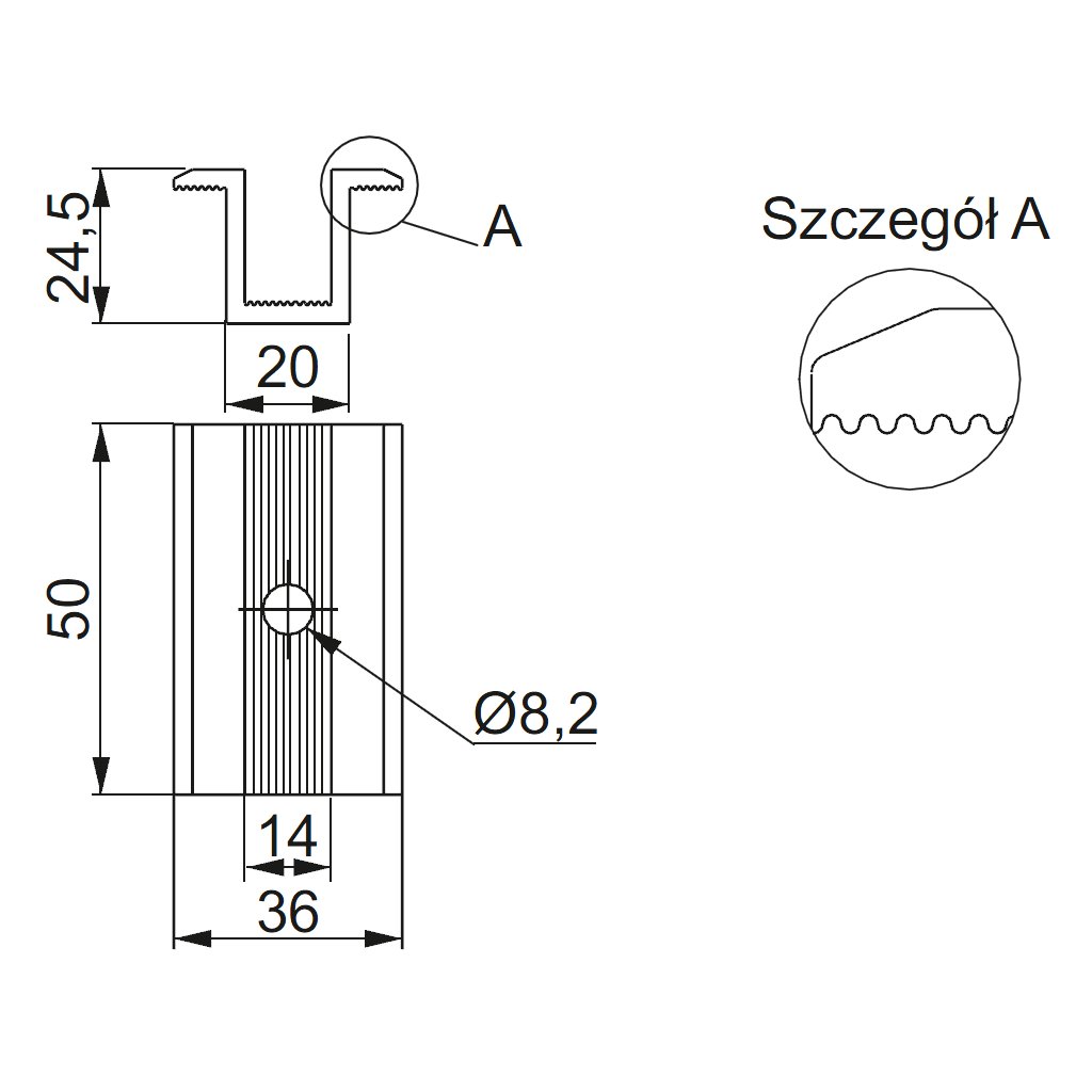 Stredná svorka na montáž fotovoltaických modulov na hliníkové profily.