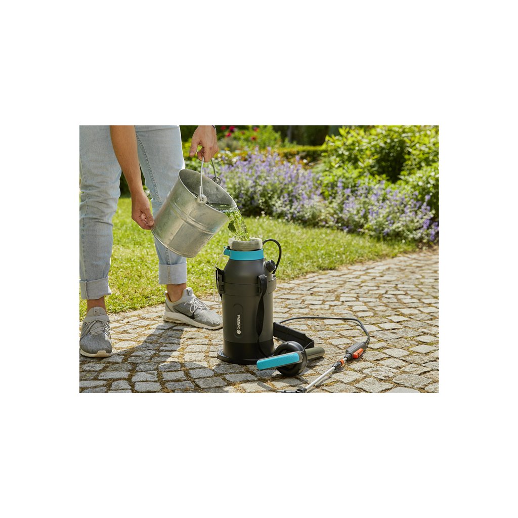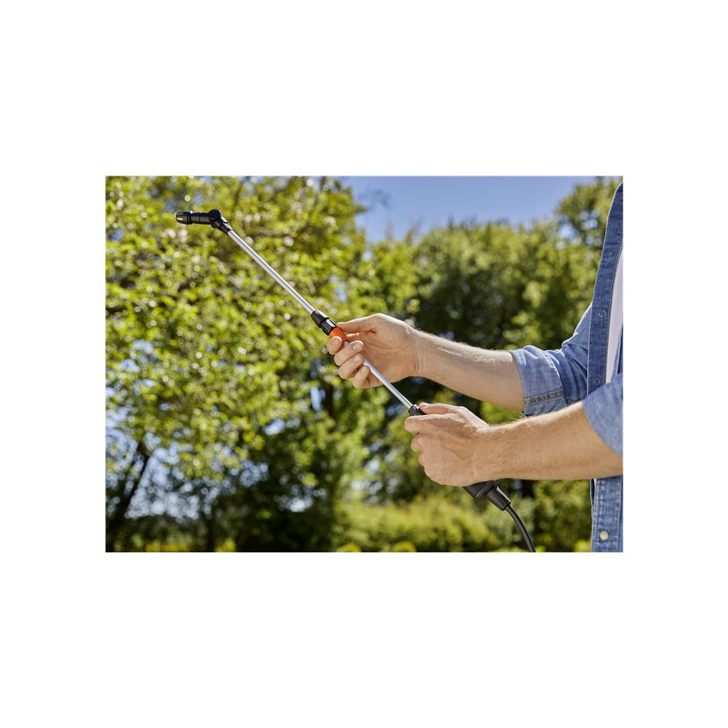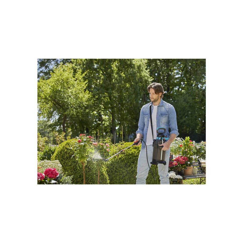 Pohodlný tlakový postrekovač na starostlivosť o rastliny so širokým záberom. Ak chcete precízne postrekovať kríky, vinič, stromy alebo iné rastliny, tlakový postrekovač 5 l Plus od spoločnosti GARDENA je veľmi dobrou voľbou. Je vybavený mnohými užitočnými funkciami, ktoré vám pri ošetrovaní rastlín podajú pomocnú ruku. Na nádobe nájdete druhý otvor s integrovaným odmerným viečkom. Prostredníctvom tohto otvoru môžete nádobu pohodlne naplniť tekutinou, odmerať insekticíd alebo ju po použití vyprázdniť. Pomocou praktickej širokej D-rukoväte vytvoríte pred použitím tlak v 5-litrovej nádobe pumpovaním. Nožičky zabezpečujú bezpečnú polohu počas čerpania. Vďaka priehľadnej lište vždy vidíte stav naplnenia. Postrekovač je vybavený druhou rukoväťou, ktorá pomáha pri zdvíhaní a prenášaní. Vďaka polstrovaným popruhom na prenášanie vám postrekovač pohodlne leží na ramene. Teleskopická postrekovacia tyč so šikmou tryskou zaisťuje dlhý dosah a flexibilné použitie. Šikmú striekaciu dýzu možno nastaviť rôznymi spôsobmi, aby ste postrekovač mohli používať na rôzne účely. Môžete si vybrať medzi rozprašovacou alebo hmlovou tryskou. Okrem toho je k dispozícii plochá striekacia tryska na presnú prácu v úzkych miestach. Druhá rukoväť je vybavená aj praktickým navijakom na hadicu, takže po použití môžete hadicu omotať okolo nej. Súčasťou tlakového postrekovača je nylonový filter ako príslušenstvo. Jeho vloženie vám umožní používať aj doma vyrobené roztoky na starostlivosť o rastliny. Súčasťou sú aj zaujímavé nápady na recepty. Táto prírodná ochrana rastlín poskytuje vašim rastlinám ďalšie živiny a zároveň ich chráni pred škodcami.