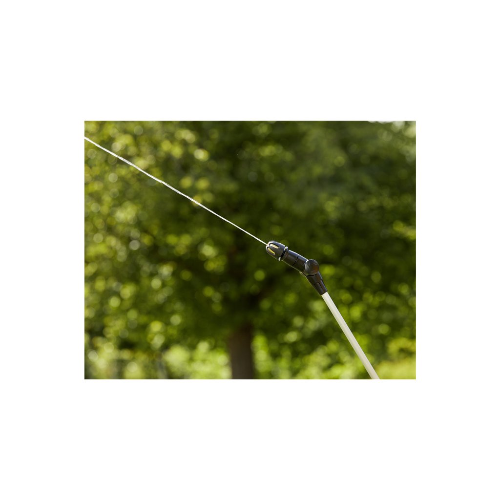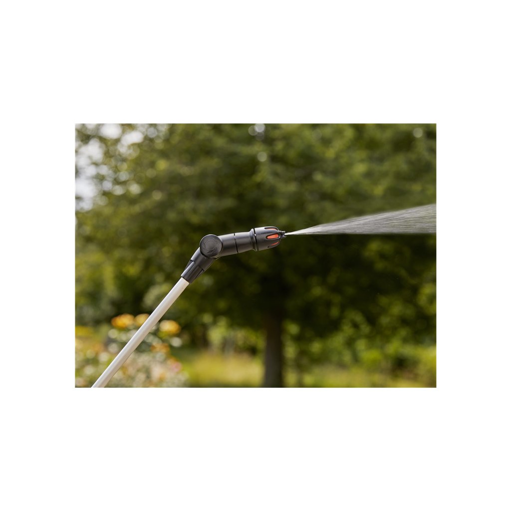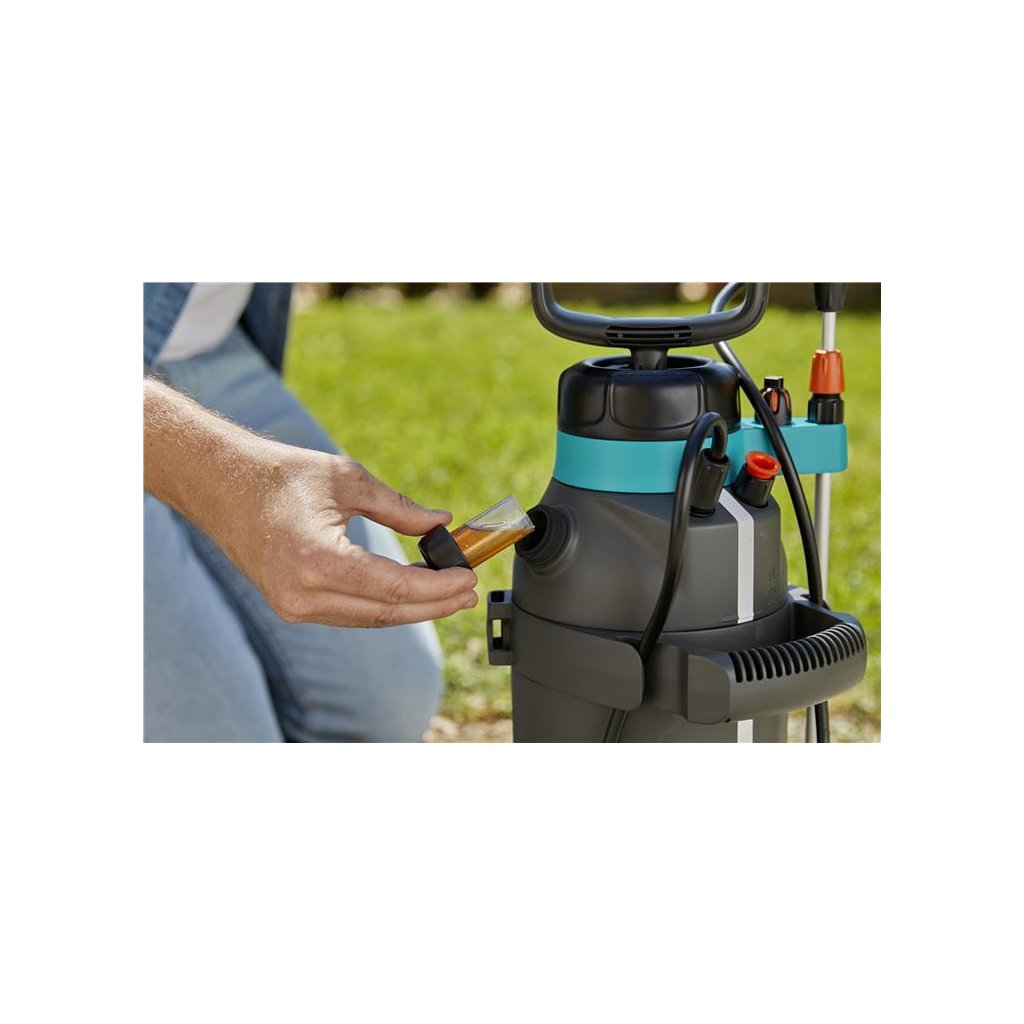 Tlakový postrekovač GARDENA EasyPump 5 l je ideálny na postrekovanie rastlín a kríkov. Je napájaný integrovaným lítium-iónovým akumulátorom, ktorý umožňuje postrekovanie bez čerpania, pretože v nádobe sa neustále vytvára konštantný tlak. Na jednoduché plnenie, meranie a vyprázdňovanie 5-litrovej nádoby sa na nádobe nachádza druhý otvor s integrovanou odmerkou. Postrekovač napájaný batériou vám ponúka vysokú úroveň ergonómie. K dispozícii je napríklad druhá rukoväť, ktorá uľahčuje používanie, a hadicu môžete po použití omotať okolo nej, aby ste ušetrili miesto. Ďalší komfort pri používaní zabezpečujú polstrované popruhy na prenášanie, teleskopická tyč, šikmá striekacia tryska, prídavná plochá striekacia tryska a ergonomická rukoväť čerpadla a tyče. Vďaka priehľadnej lište vždy vidíte aktuálny stav naplnenia. Pri aplikácii pesticídov alebo zalievaní rastlín máte k dispozícii tieto možnosti: rozprašovací prúd, jemná hmla a plochý prúd na presnú aplikáciu v úzkych miestach. Môžete pracovať aj dlhší čas: batéria tlakového postrekovača môže pracovať na plný výkon až 2 hodiny. Tlakový postrekovač EasyPump s objemom 5 l sa dodáva so zaujímavými receptami na výrobu vlastných ekologických roztokov. Súčasťou balenia je aj nylonový filter na filtrovanie domácich roztokov na starostlivosť o rastliny.