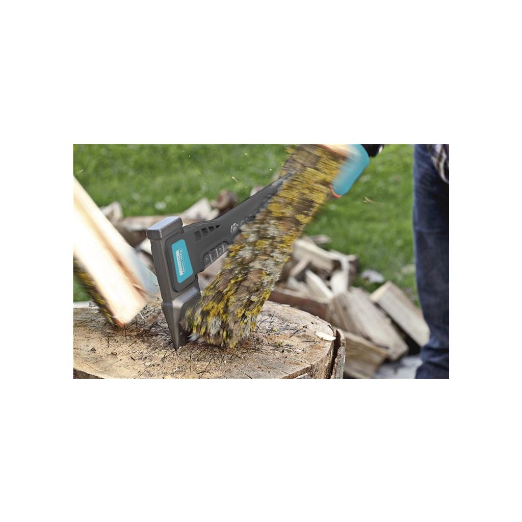 Malá sekera na outdoorové a trekingové aktivity. Univerzálna sekera 900B od spoločnosti GARDENA je malá sekera na prípravu palivového dreva, záhradkárske a trekingové aktivity. Násada vystužená PA vláknami je odolná a pevná. Hlava sekery má nepriľnavý povrch, ktorý znižuje trenie a uľahčuje prenikanie do dreva. Mäkká rukoväť na ergonomickú a bezpečnú manipuláciu. Ťažisko v blízkosti hlavy sekery zabezpečuje dokonalé vyváženie a rozloženie hmotnosti. Funkcia kladiva na jednoduché a efektívne použitie štiepacích klinov (oceľové kliny sa nesmú používať).