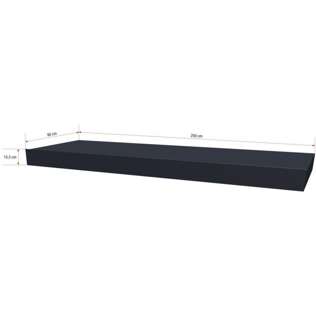 - Rozmery: šírka 1600 / 2000 / 2500 mm, hĺbka 900 mm, výška 155 mm