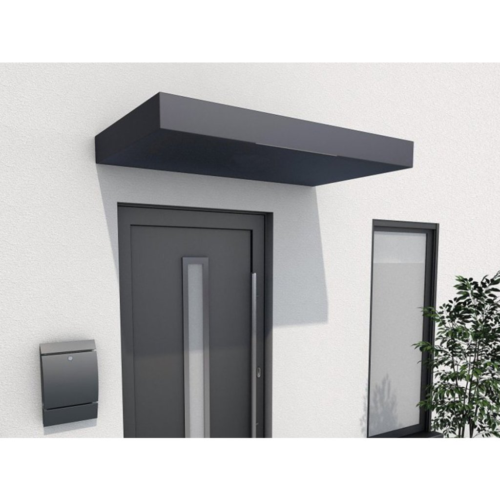 Oproti tradičnému osvetleniu ponúka LED pásik (4000 K) rovnomerné a efektívne osvetlenie vstupného priestoru s minimálnou spotrebou energie. Strieška je vyrobená z práškovaného hliníka v elegantnej antracitovej farbe, pričom jej výplň tvorí izolačný materiál EPS – pevný, odolný a rozmerovo stály.