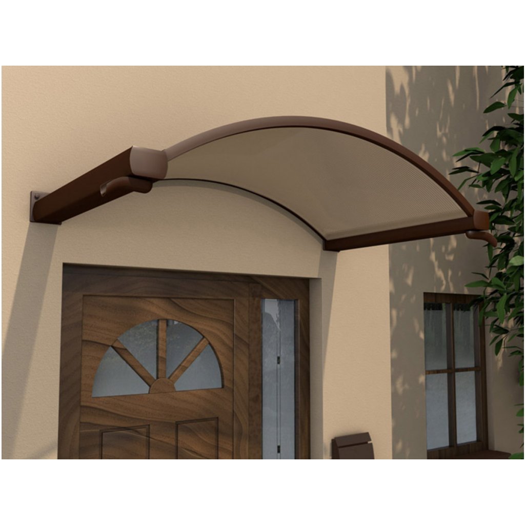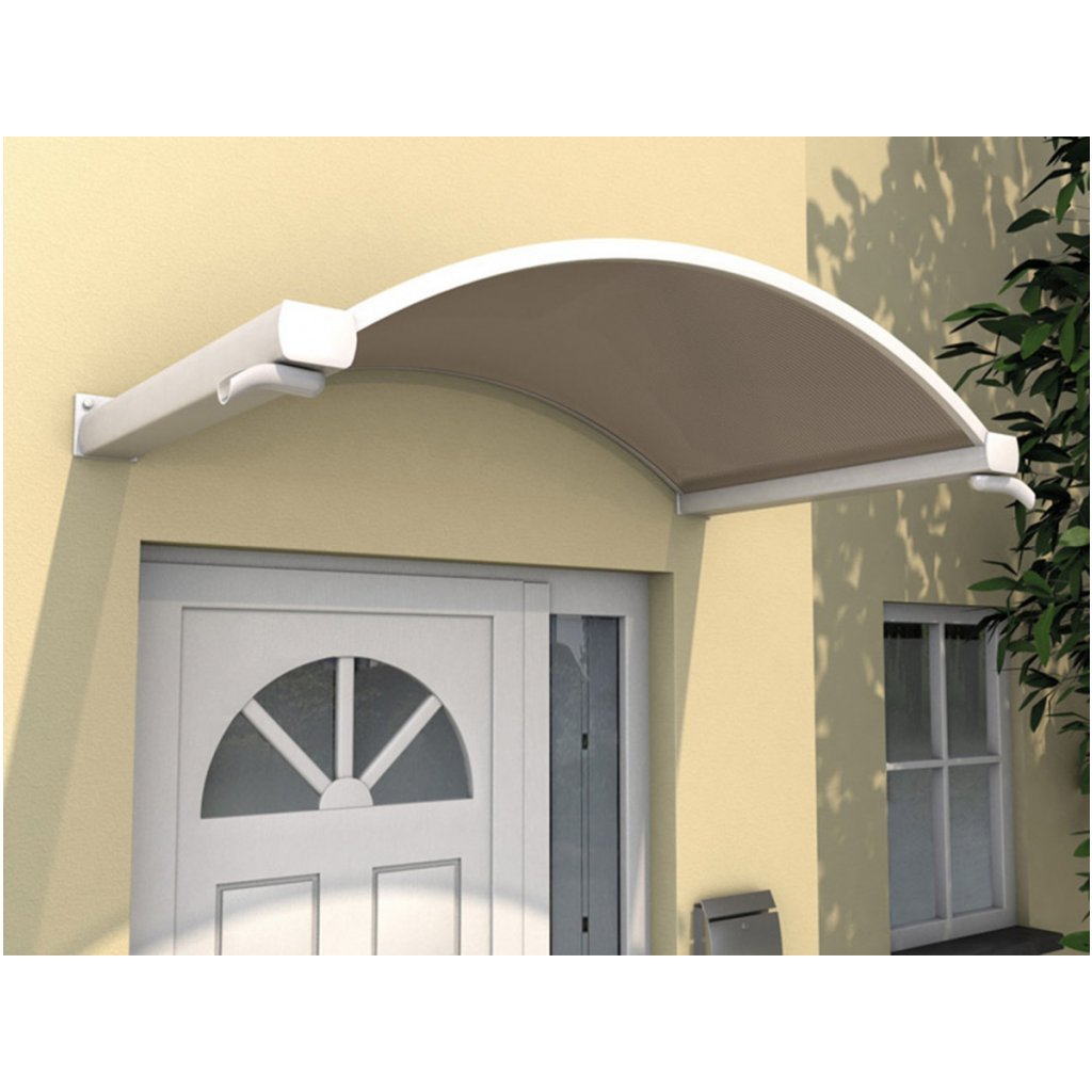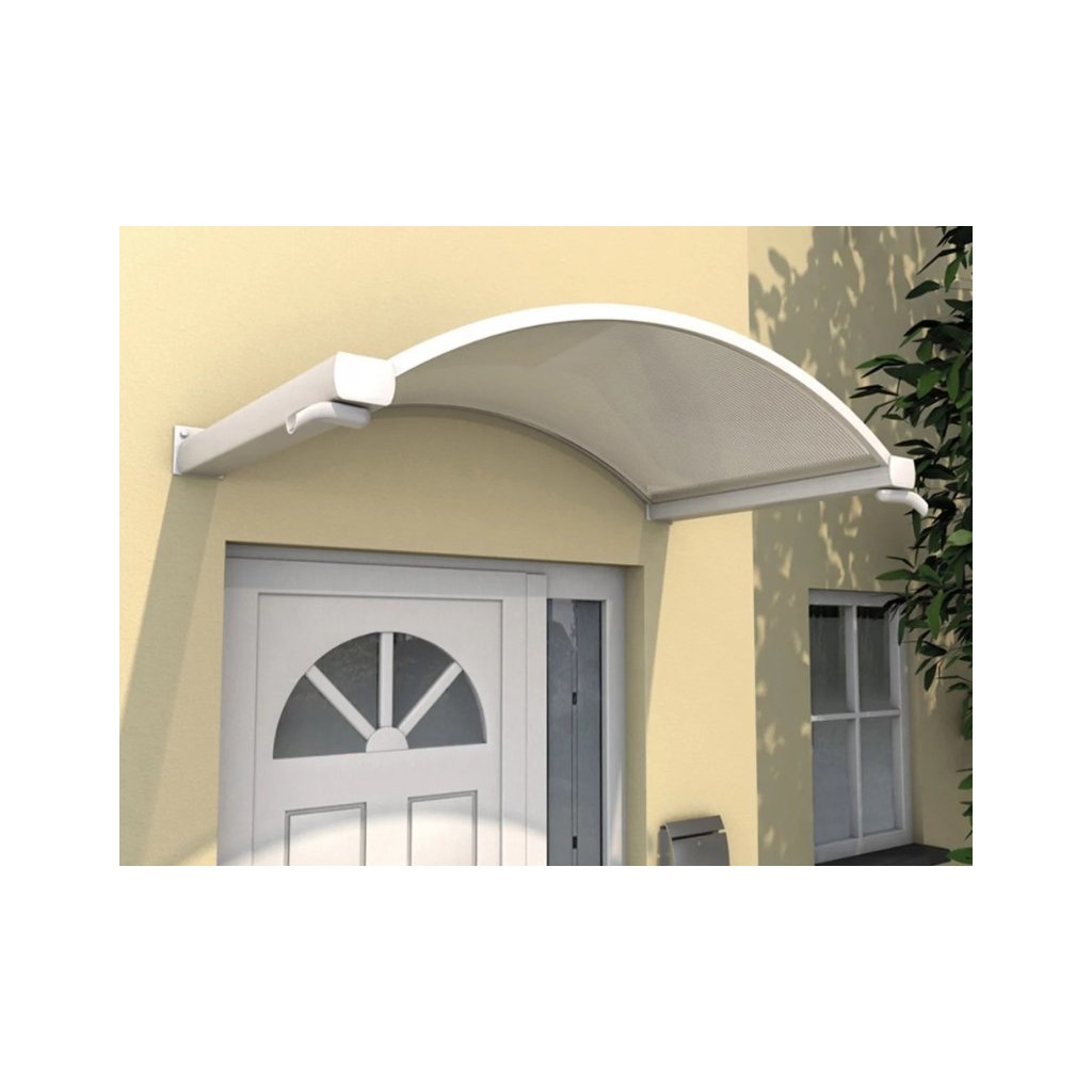 Oblúkové prevedenie vchodovej striešky nemeckej výroby z dutinkového polykarbonátu a hliníkového rámu so žľabmi na oboch koncoch. Hrúbka zasklenia 6 mm. Šírka vchodovej striešky 160 cm. Zaťaženie až 75 kg/m². Záruka 5 rokov.