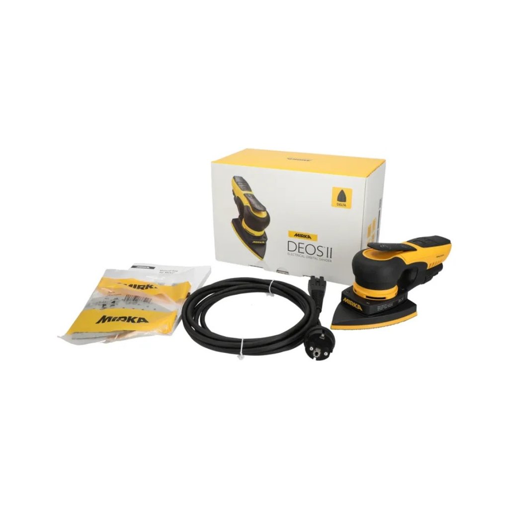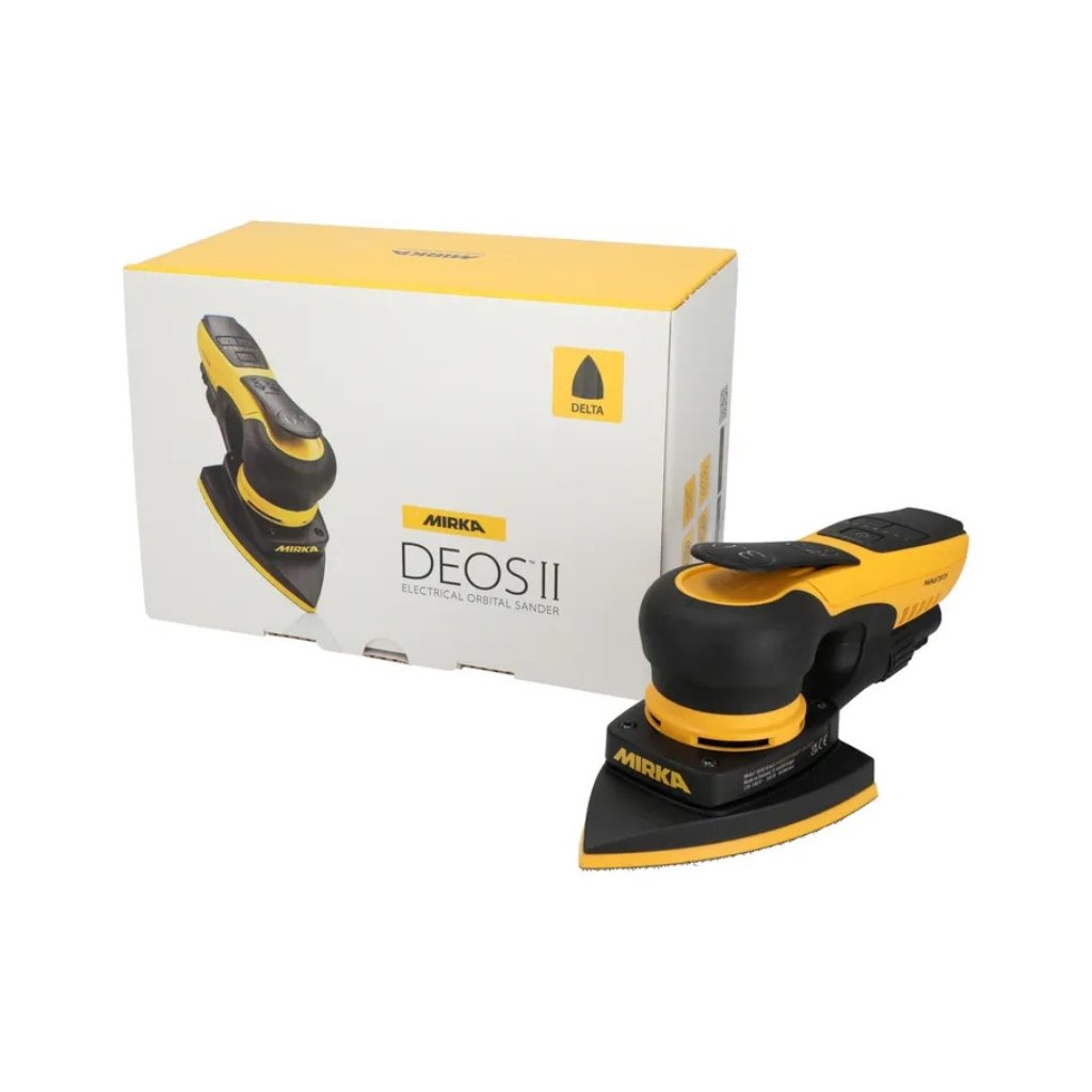 Mirka® DEOS II 663 Delta je kompaktná a ľahká brúska s výškou len 10 cm, ktorá umožňuje jednoduchú manipuláciu a presné brúsenie aj na ťažko prístupných miestach.