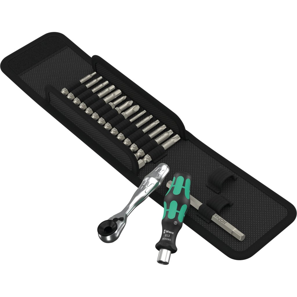 Kompaktná súprava náradia Wera s 19 základnými nástrojmi pre servis okien. Špičkové nástrčné hlavice a bity Wera na univerzálne použitie pri montáži okien. S ručným držiakom bitov a 1 držiakom bitov s račňou.