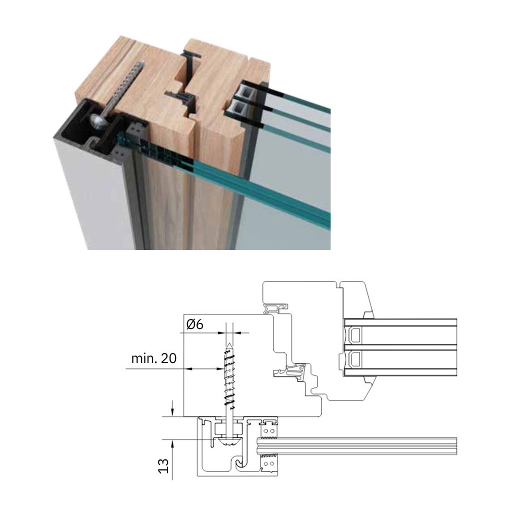 - Opatrne (ideálne pomocou prísaviek na sklo) priložte sklo k nosnému profilu a zaistite ho krycím profilom.