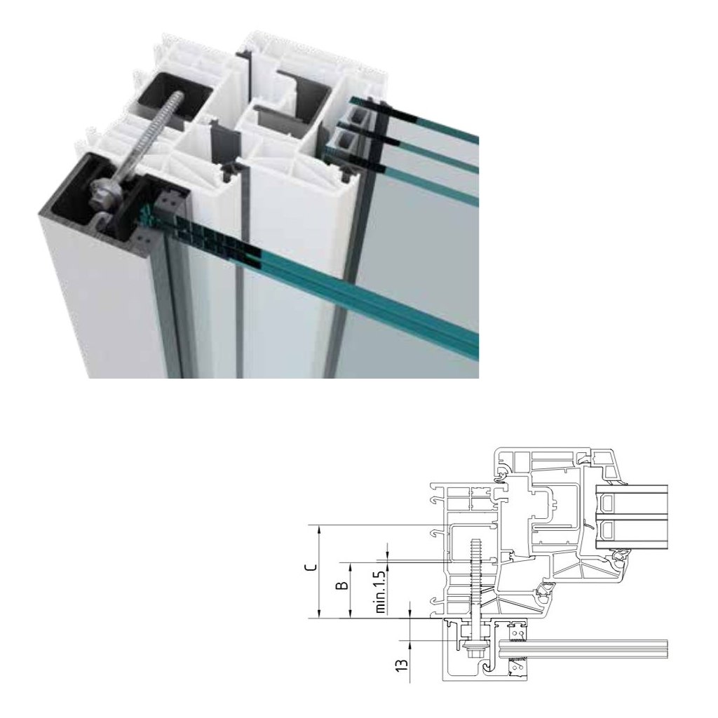 - 2x nosný profil skla: L 900 mm alebo 1000 mm