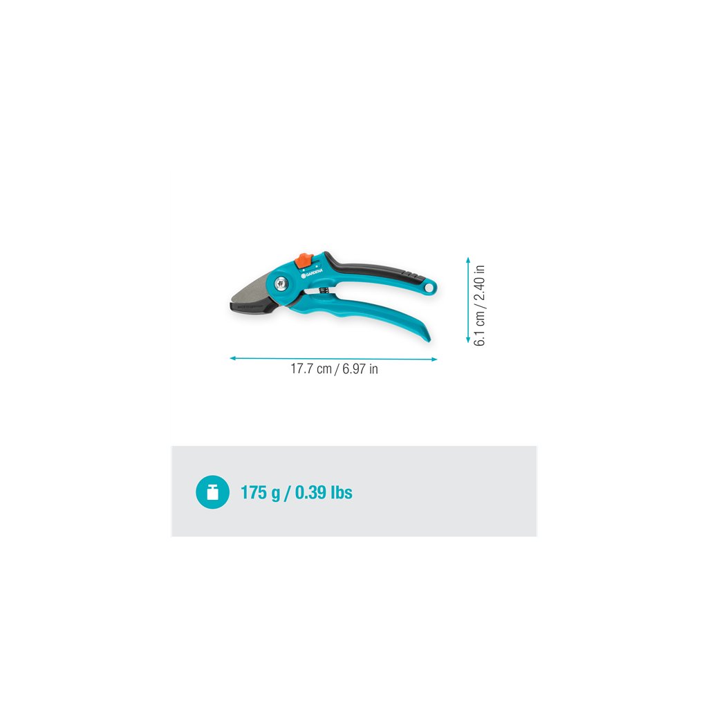 - Pohodlná manipulácia vďaka ergonomickej rukoväti. Perfektne sa držia a mäkké komponenty integrované v hornej časti rukoväte poskytujú potrebné protišmykové vlastnosti a sú šetrné k zápästiu v každej strihacej situácii.
